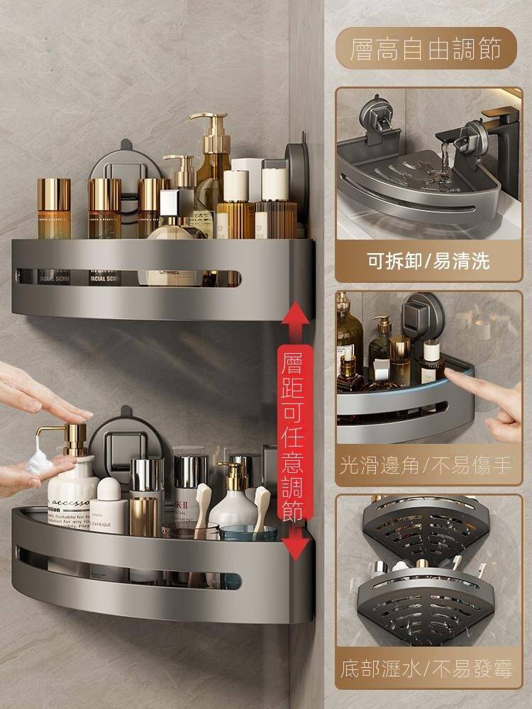 5分鐘前自帶吸盤,可隨時移動重復使用的置物架 免打孔廚房浴室衛生間三角置物架多用途壁掛收納架毛巾架 - 【超夯下殺】買一送二,共三入組 NT$1000